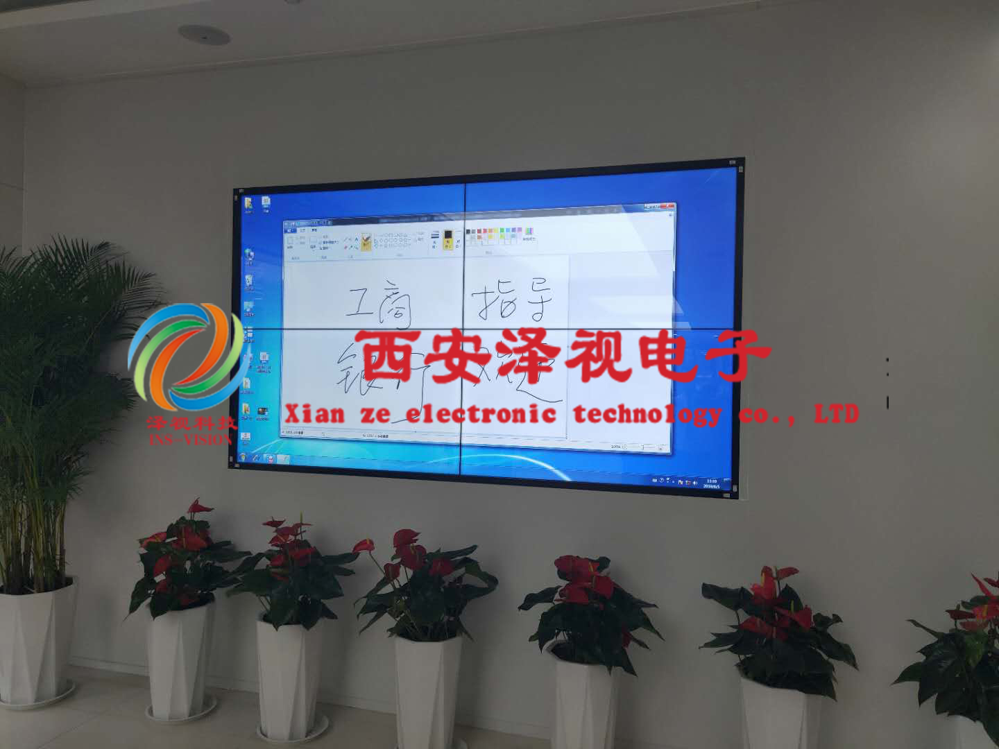 此次項目為2019年承建,會議室是由9塊46寸拼接組成大屏,主要用途是開遠(yuǎn)程視頻會議及擴聲系統(tǒng),展廳是有4塊55寸組成觸摸大屏,改該大屏真正起到了與客戶互動的作用。增加客戶互動性。